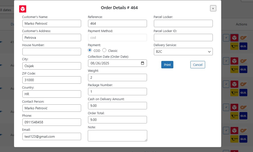 - Choose “DPD Print label”