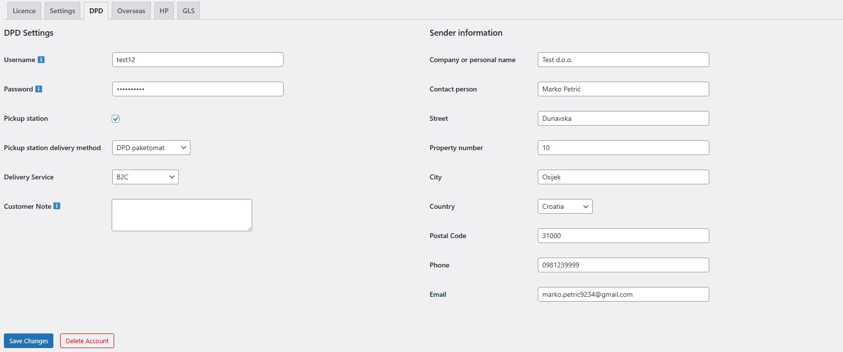 Before using the label generation feature, you need to enter the username and password you received from DPD (DPD administration) in the plugin settings (DPD tab), and make sure to enter the sender details so labels can be generated correctly.